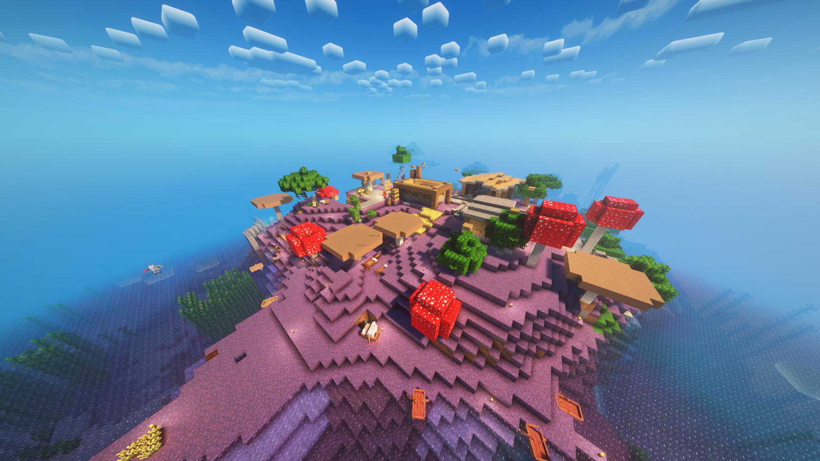 Fungaia was a production and mining powerhouse. The town’s location on a mushroom island made food production and mining for resources extremely simple, as no mobs would spawn, and mooshrooms provided an endless supply of stew.