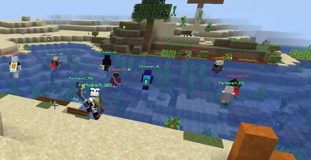 During the first day, several disparate desert tribes were united by a river. By the first night, roughly thirty people were gathered on a sky base near spawn. There, one player had crafted a fireplace, and began handing out food; Player 17. Being blessed (had highest pickup priority), he controlled the food, and graciously shared it with the starving masses. When day came, he led us through the desert, following rumors of a promised land: the savanna with actual trees, holy sheep, and more animals. There the people survived of fish for three days, as we gathered our resources. On the third day, Player 17 was hailed as leader by a unanimous aye! Player 311 and other builders began building the monster pit, to remove mobs under the sky base. Word of other civilizations spread to Player 17, and planned to send messengers to the others, and form peaceful alliances.