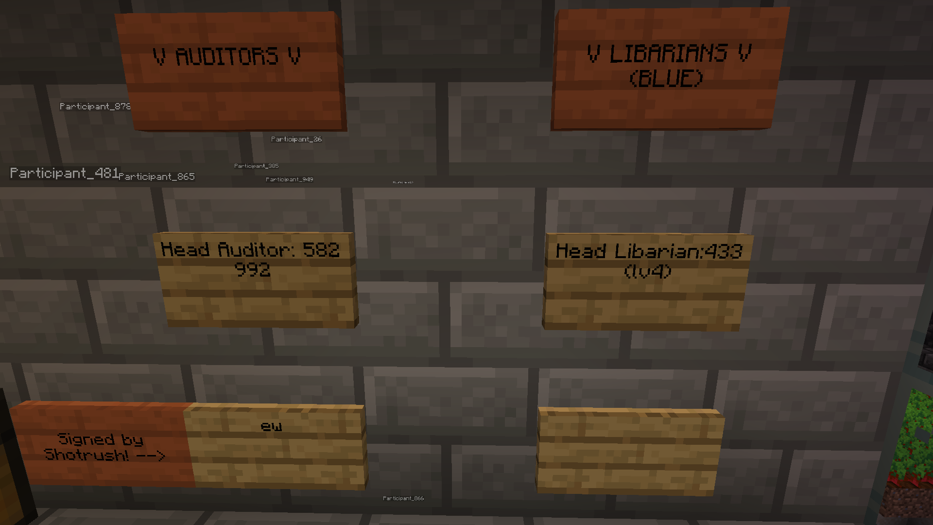 582 "Beaver" | Organizer, historian, auditioner | "Who Needs A Builder?" | - He became the head builder in later sessions as 311 was less online. - Invented the "Beaver Damn", which secured the inside of the base from mobs. - Very clever |