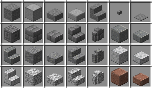 - Smelting Stone and Smooth Stone (and craft all derivatives like stairs, slabs, etc.)