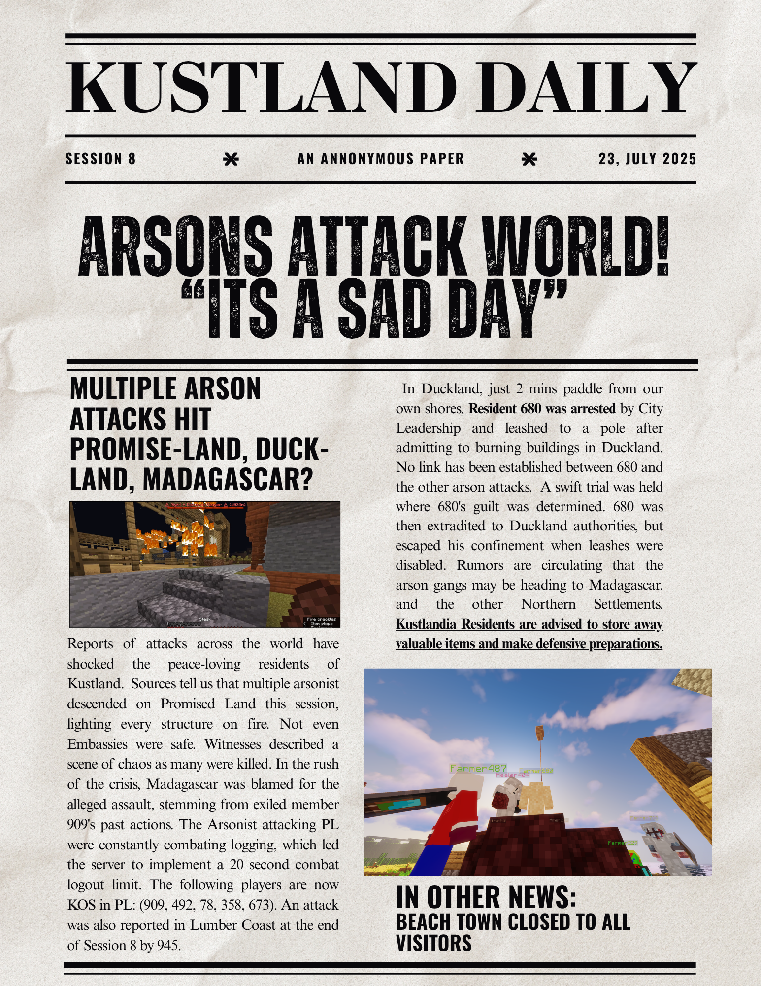The Kustlandia Daily News is a newspaper made by user "thritystone" on Discord