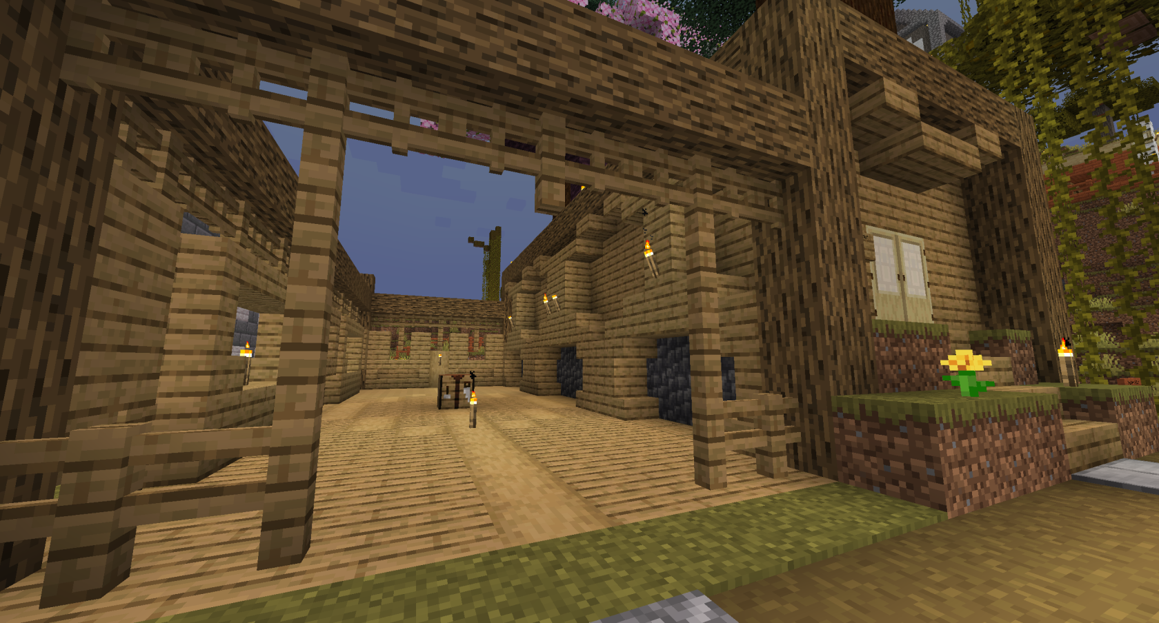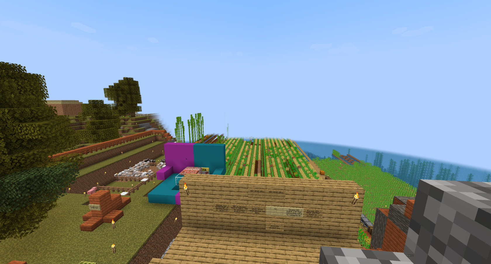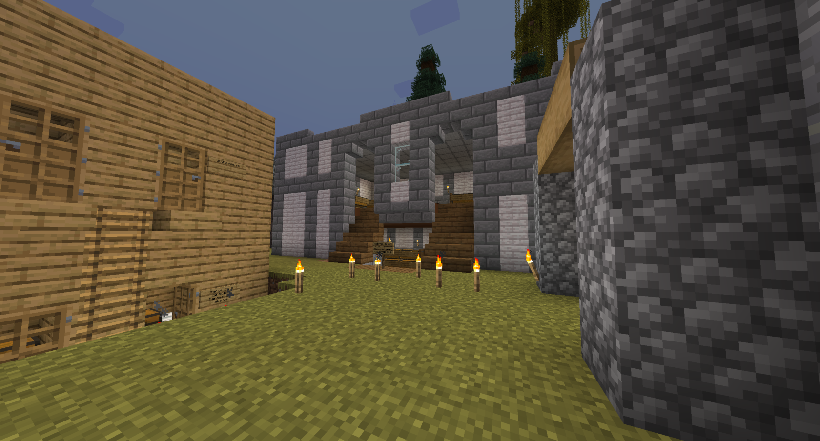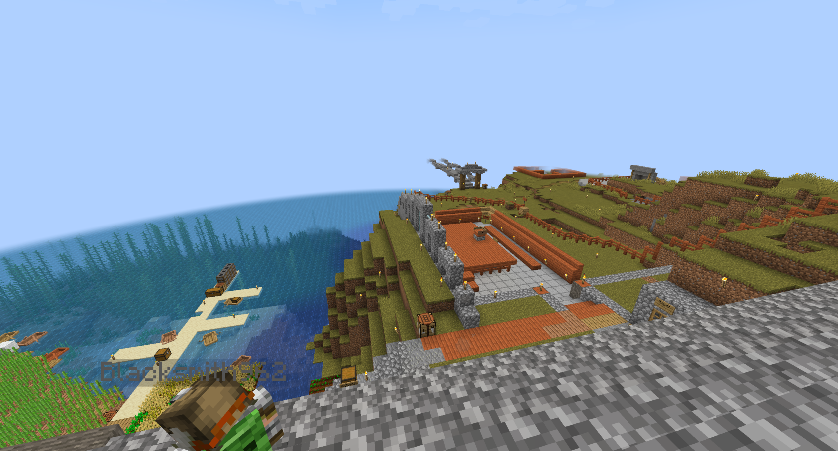 The below image shows a view of the wall, built by builder Gremlin along the southern barrier. It would have continued construction to encompass The Promised Lands, but lack of time caused this project to end unfinished.