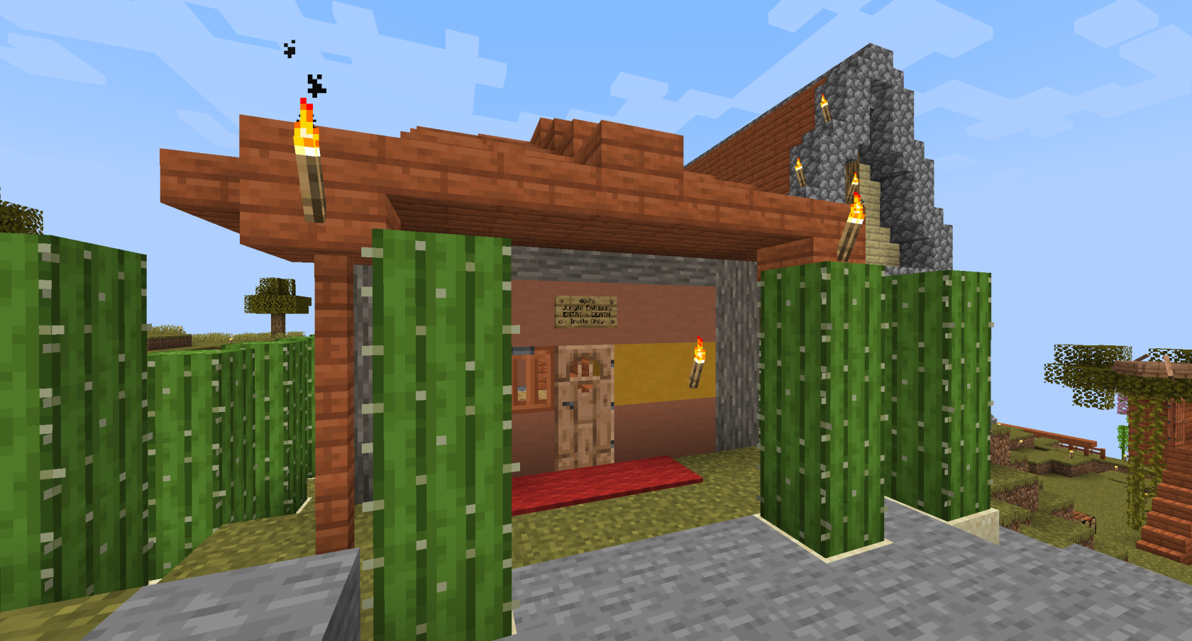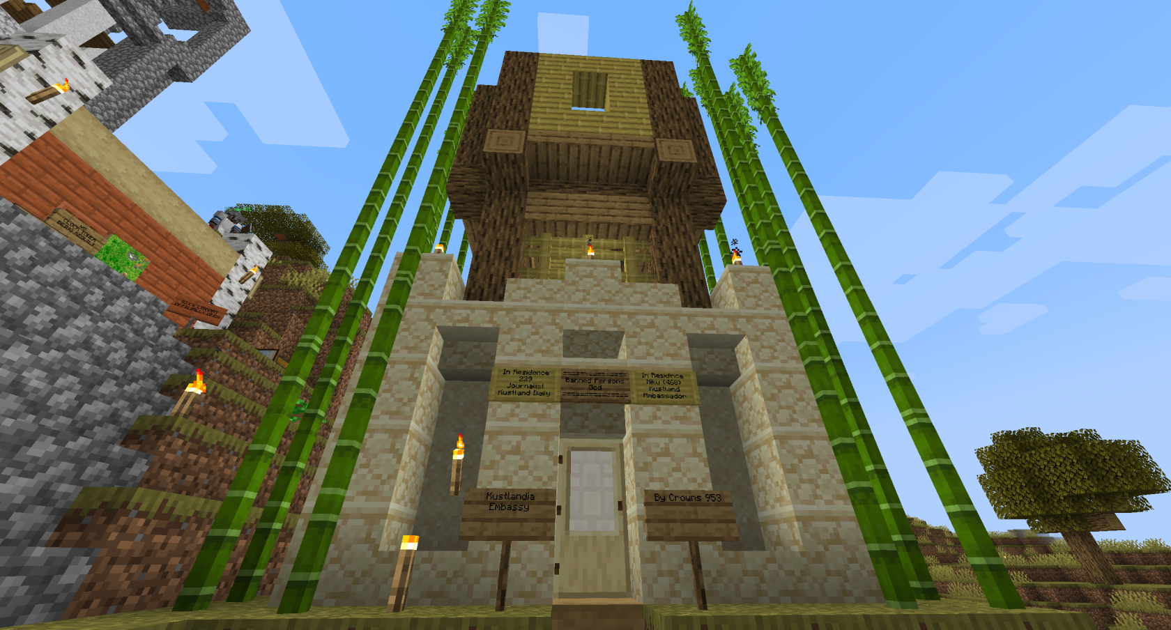 The below images show two of the embassies built in The Promised Land, however neither saw much use due to tense international relations that evolved soon after their construction. The Kustlandia Embassy was designed for their diplomat, 123, but he was expelled shortly after for attempting a coup in order to declare war without his peers' approval.
