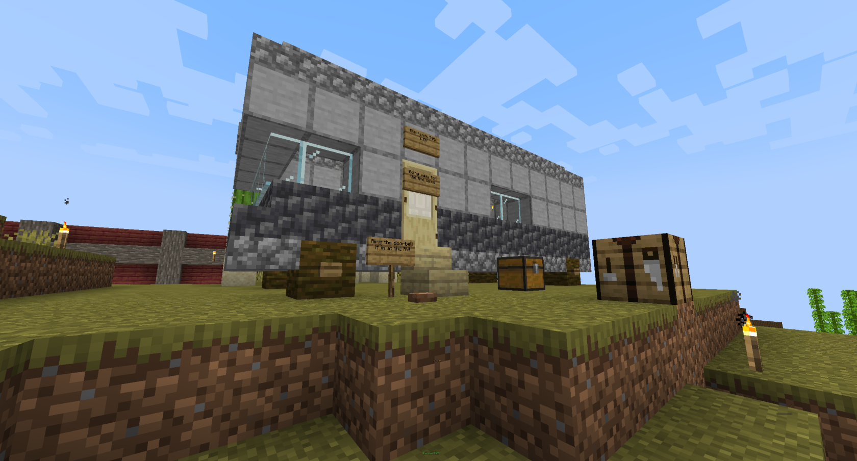 This sign board was built under the Chapel on Session 2, managing to last until the very end somehow. When this was built, the Chapel was the only enclosed building in The Promised Land, the population was around half of the size it would reach, and it operated as a bustling society for the Australian refugees.
