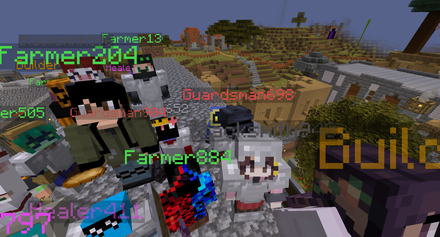 The following video is a recording by farmer Squirrel of the party at the end of Session 6. It also shows the farm and other farmers, the Farming Estate, the Chapel, the News Wall, Dunk the Jester, the Healing Hut, the (burned) first Tenements, the Town Hall under construction, and the Walmart. This party occurred several times across Trial 0, and this was the only song that was ever played. Video here: session 6 mc specialization event ending