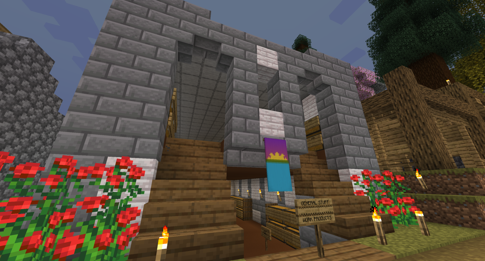 Even more projects were undertaken in this time by the Builders Guild. As part of Project Flameproof, The Town Hall (built from the Town Square), the Chapel, and the Tenements were all improved and reinforced with non-flammable materials. The "Walmart Supercenter" item store was created. The Miners Guild struck rich in mountains to the south, allowing guardsmen to wear full sets of diamond armor. The Farmers Guild built a gorgeous home into the cliffside, and they executed Project Ark/Seedbank to store backups of farm animals and seeds to mitigate the possible damage from future raids.