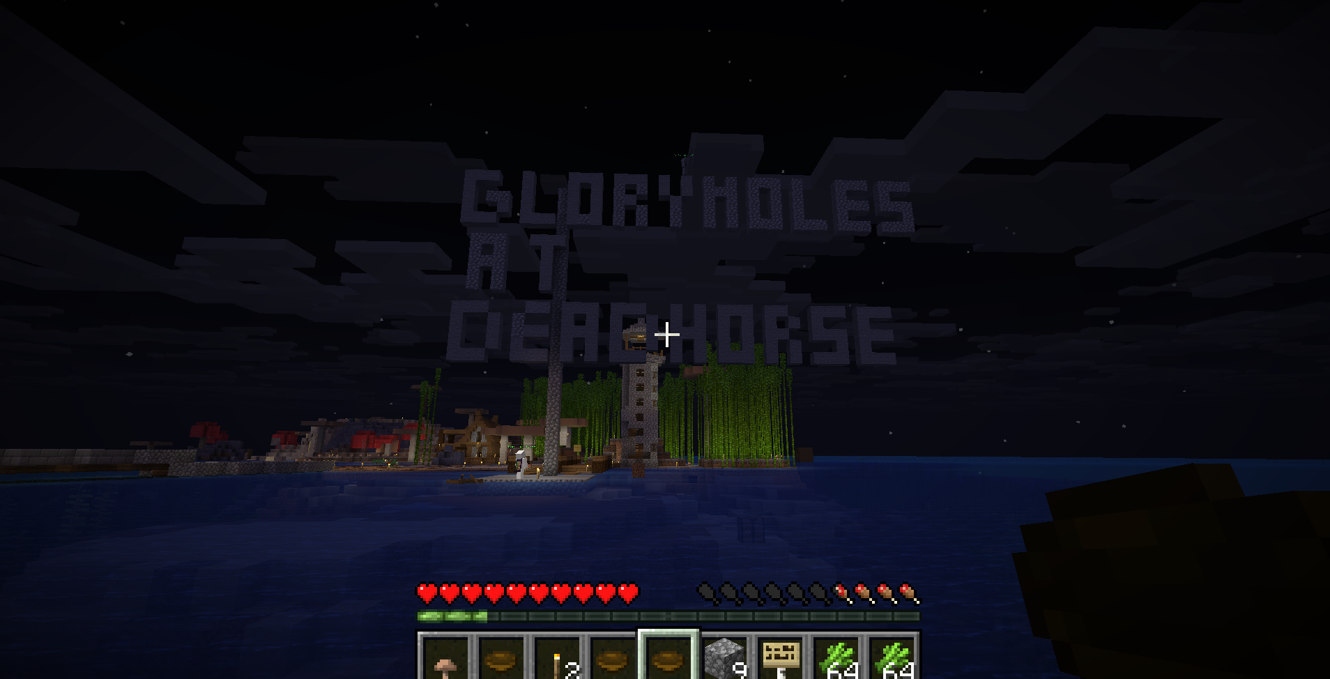 (One of our members created a sign saying "death to deadhorse," but it was changed during the invasion by deadhorse members to "glory to Deadhorse." After a few minutes, the jester told healer 470 to change that to what it's now: "gloryholes at deadhorse.")